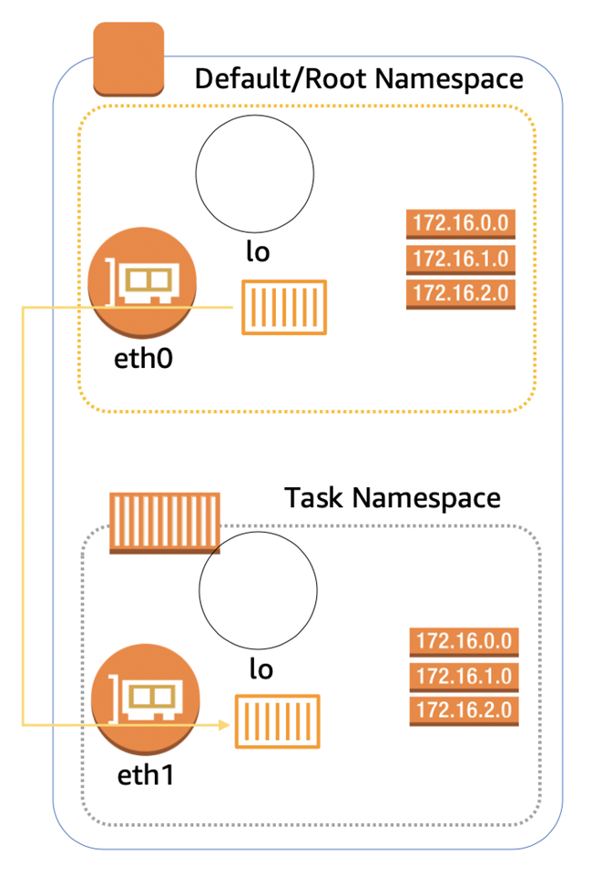 我们先来看一下ECS的网络配置。当我们将ECS与VPC结合使用的时候,每个任务都会有自己专用的弹性网络接口 (ENI)。由于每个任务和每个ENI是一一对应的,而每个ENI和安全组也是一一对应的,因此每个任务进出的任何通信都会通过安全组来进行,从而简单便捷的实现网络的安全性。