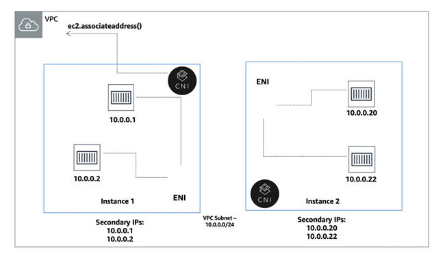 Amazon VPC CNI目前是Amazon EKS集群默认的网络插件。在Amazon VPC CNI中,对于每个Kubernetes节点,我们创建多个ENI并且分配辅助IP地址,对于每个Pod,我们选择空闲的辅助IP地址进行分配。这样通过Amazon VPC CNI,可以使得EKS得到原生的Amazon VPC网络支持,使得Pod和Pod直接互联互通,包括单一主机内的Pod通信,不同主机内的Pod通信,甚至是Pod和其他AWS服务,Pod和On-Premise,Pod和Internet的通信,并提供了更快的网络延迟。Amazon VPC CNI是一个开源项目,在GitHub上进行维护。