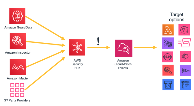 AWS Security Hub是另一个支持集中化的服务,可以提高对组织的可见性。Security Hub集中并优先处理安全和来自AWS帐户和服务的遵从性发现,并且可以与第三方合作伙伴的安全软件集成,以帮助您分析安全趋势并确定最高优先级的安全问题。