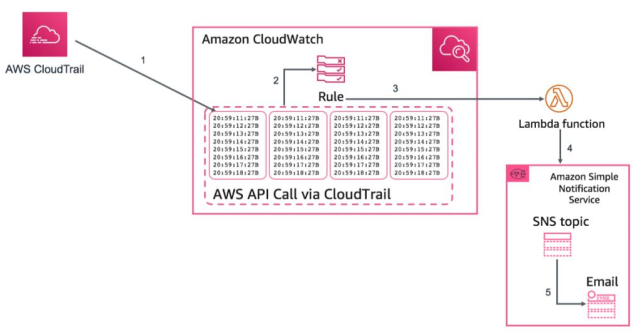 AWS CloudTrail日志也可以触发预先配置的Amazon CloudWatch事件。您可以使用这些事件来通知用户或系统某个事件已经发生,或进行补救操作。例如,如果您想要监视Amazon EC2实例上的活动,您可以创建一个CloudWatch事件规则。当一个特定的活动在Amazon EC2实例上发生并且事件在日志中被捕获时,规则会触发一个AWS Lambda函数,它会向管理员发送关于该事件的通知电子邮件(事件发生的时间、执行该动作的用户、Amazon EC2详细信息等)。