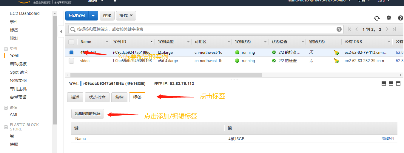 - StarEC2InstancesForBeiJing :启动北京区中具有特定标签(key:online value:day)且实例状态为stopstopped的EC2实例