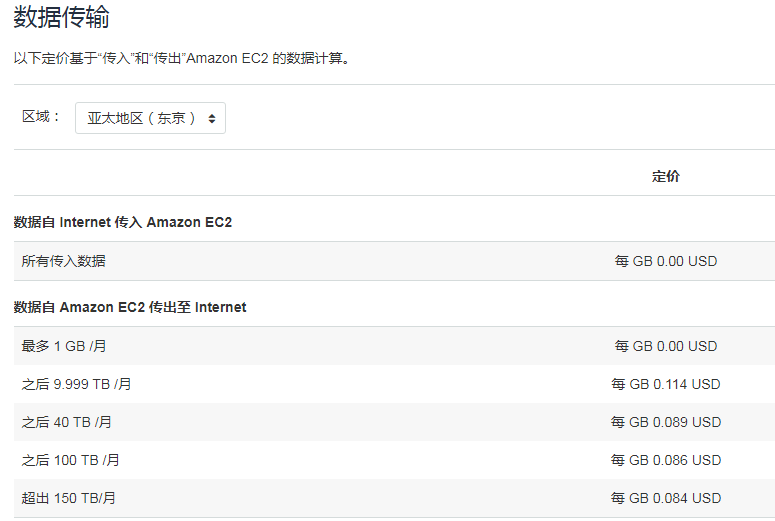在传输数据时,特别是在EC2实例之间以及RDS、Redshift和其他服务实例之间传输数据时,尽量将数据传输保持在相同的可用区内通过私有ip传输数据,否则每个方向将收取0.01USD/GB的费用。