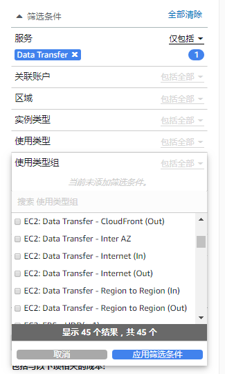 降低AWS成本的第一步是了解您的应用在哪些地方收取的使用费最高。为了帮助实现这一过程,AWS提供了一个称为成本分配标签的便利特性,可以与AWS成本管理器一起使用,以分析哪些实例/服务的数据传输费用来自何处。通过将这些标签应用到您的实例上,您可以定位到产生最高AWS数据传输成本的实例,并进一步按类型过滤这些实例的流量费用:CloudFront (out)、Inter AZ、Internet (in)、Internet (out)、区域到区域(in)和区域到区域(out)。