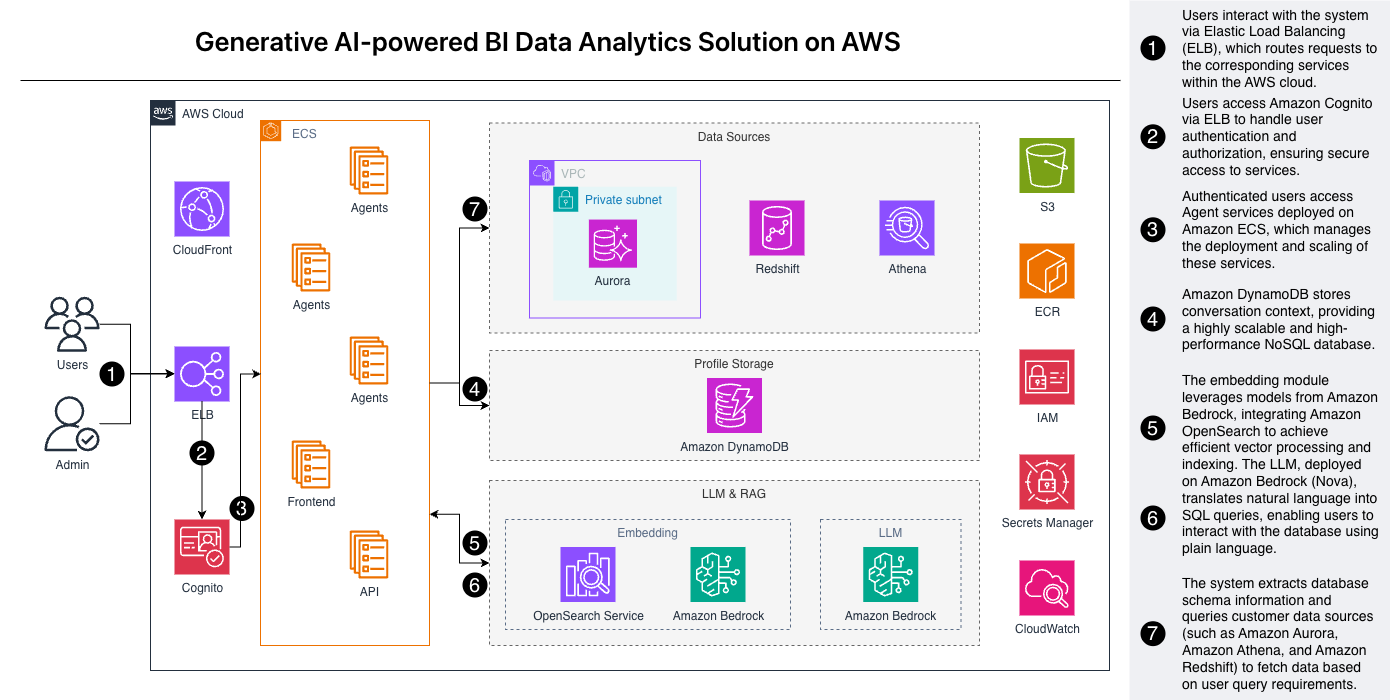 凭据管理:使用 Secrets Manager 加密数据库连接信息。全链路监控:通过 Amazon CloudWatch 实时追踪 Nova 模型的调用延迟、Token 消耗、SQL 执行成功率及系统健康度。
