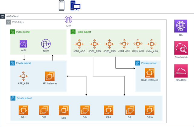泰岳在第一时间了解到客户海外新业务的需求后与客户负责人进行了多次商务交流和案例介绍,如,验证AWS弹性可伸缩架构、多种采购策略方案、迁移Postgresql的方案、日志集中管理方案等。在多方面帮助客户有效控制成本,并且提供成熟的解决方案,从而促使客户最终决定将全卖通服务迁移到AWS东京区域。